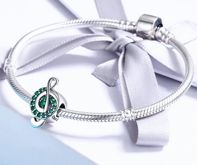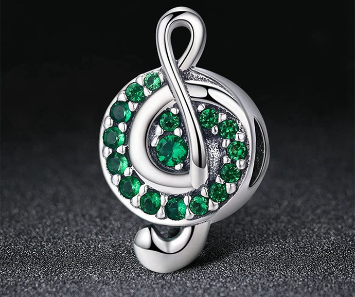 Независимо дали обичаш да слушаш музика, свириш на някакъв инструмент или познаваш запален меломан, този сребърен талисман е идеален израз на тази страст. Бижуто е в кръгла форма. Лицевата му страна е инкрустирана със зелени цирконий и е пресечена от сребърен ключ сол. Задната му страна е изографисана с надпис I <3 music. Талисманът е страхотно попълнение към ежедневната визия или за музикално събитие. Може да бъде подарен при завършване на музикално образование, на учителка по музика или на близка приятелка, за да ѝ напомня на любимата мелодия и да не забравя, че животът е песен.