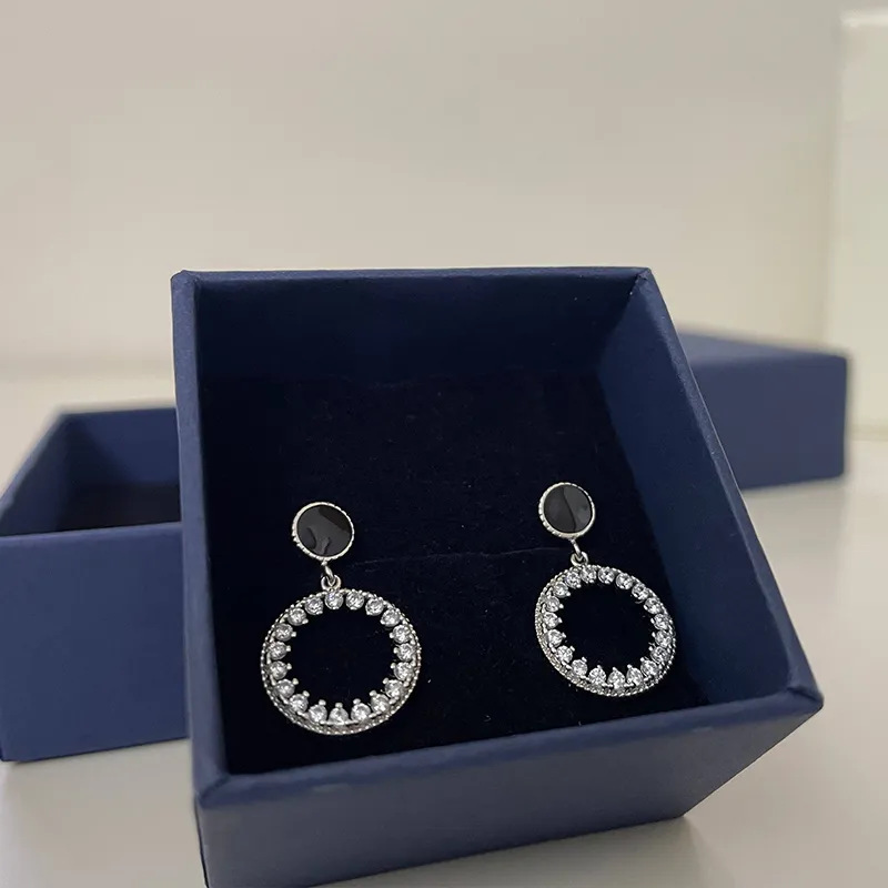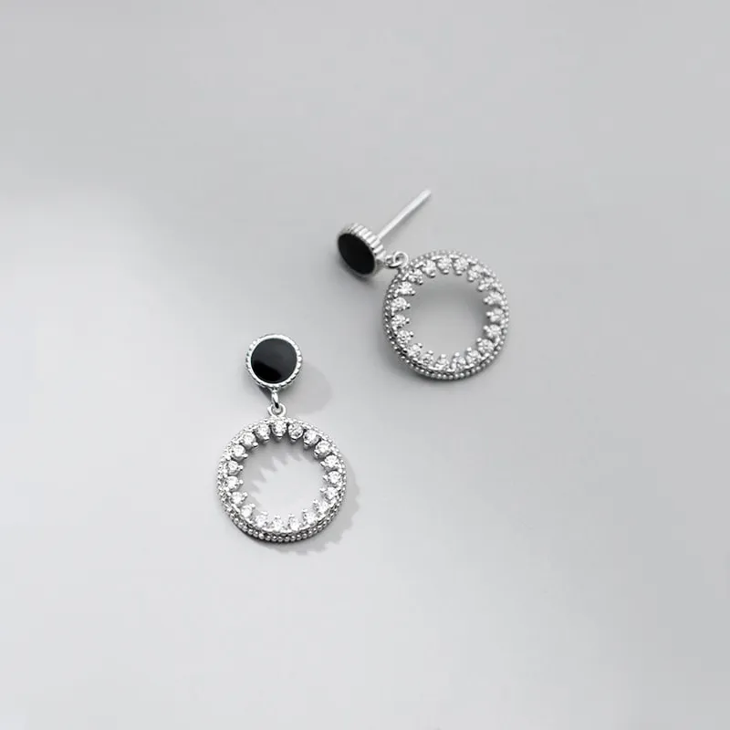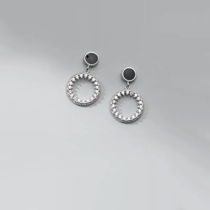 Формата на кръга е символ на безкрайността, а вложена в обеци с бели цирконий дава усещане за вечен блясък. На сребърната им основа, която благодарение на винт се прикрепя към ухото, се намират и две кръгчета от черен емайл. Те придават величественост на визията, а и позволяват към тях да се прикрепи висящата част от сияещи камъчета. Изключително елегантни обеци, които могат да бъдат подарени за важен повод като годишнина или юбилей.