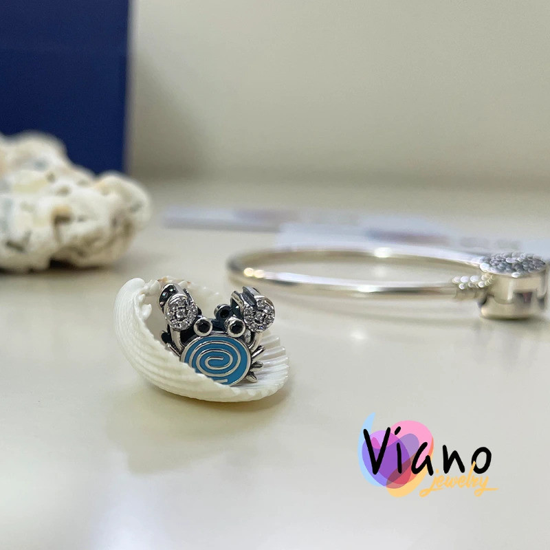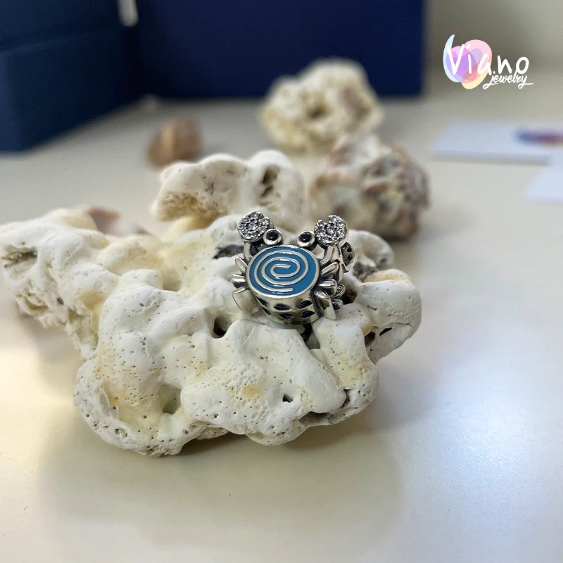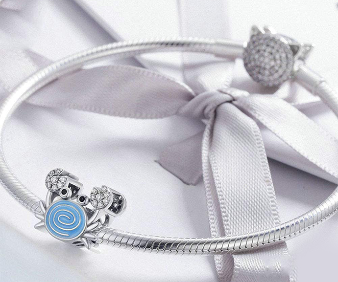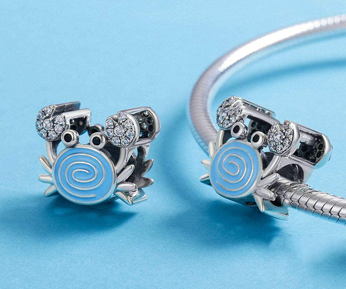Интересно лятно бижу, изработено от сребро във формата на малко раче. Щипките му са украсени с изящни циркониеви камъни, а тялото му е допълнено от син емайл. Морският представител се свързва със силната интуиция и напомня, че независимо от посоката на движение, път винаги има. Талисманът е подходящ за носене на гривна или синджир. Чудесен морски подарък и идеален елемент към лятната визия. Подходящ и за представителките на зодия Рак.