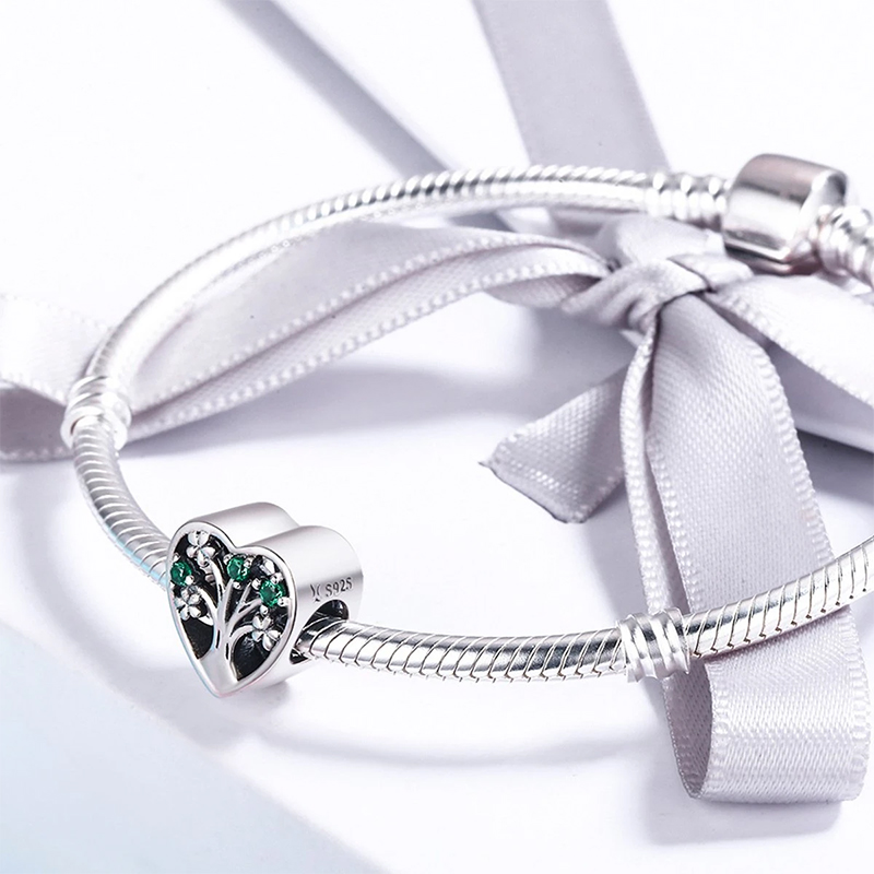 Дървото на живота описва свързаността на всичко в природата, на родовата памет, на индивидуалността, на прераждането и на новия живот. Обгърнато в сърце, символизира и любовта като свързващ елемент. Талисман с подобно значение е перфектен подарък за годишнина, за юбилей, за майка, за жена, за дете. Самото бижу е направено от сребро, три зелени камъчета и сребърни цветчета. Поставено върху сребърна гривна, придава сила и нежност във всеки ден.