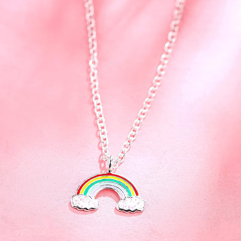 Красиво, нежно колие с усмихната дъга. Съчетание от ярки цветове, нежна изработка и фантазия – идеален подарък за малка дама, която обожава приказки и вълшебства.