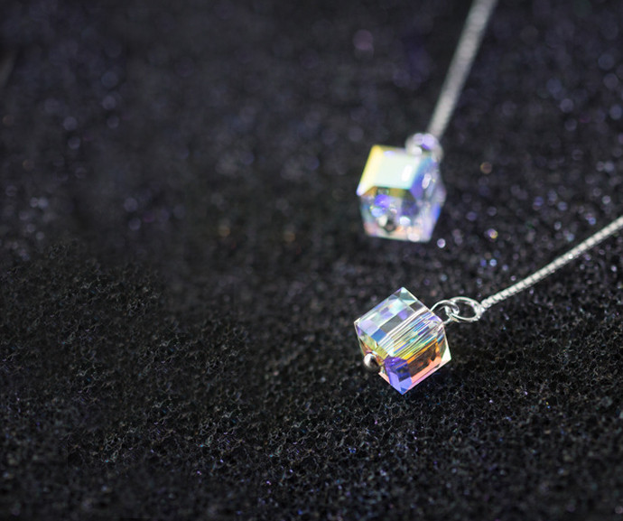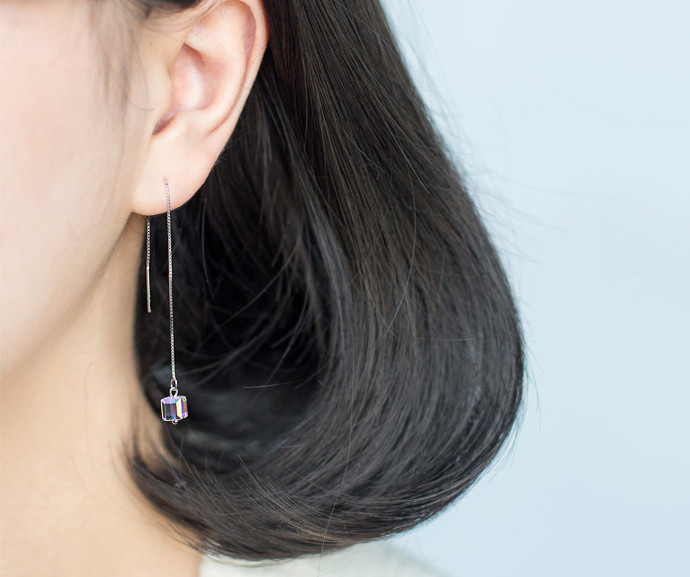 Сребърни обеци, които висят нежно от ухото. Поставят се лесно чрез промушване. Впечатляват с деликатно изящество, за което допринася и многоцветния циркониев камък в квадратна форма с размер от 6 мм. Обеците са изключително красиви и могат да бъдат акцент на всяка визия. Съчетанието от семпло и атрактивно ги прави подходящи за носене както в делничен ден, така и за вечерен повод.